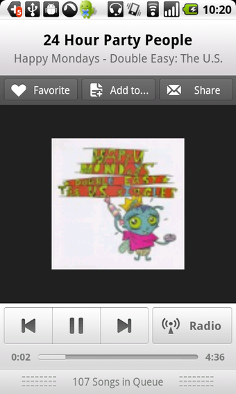Per esempio, una ricerca degli Imagine Dragons mi dà non solo gli album del gruppo, ma anche la colonna sonora dei Transformers e di Iron Man 3. Tra l'altro è un modo per vedere cosa consiglia la gente o ascoltare canzoni simili. La lista di canzoni sembra abbastanza completa, e puoi anche salvare canzoni per poi ascoltarle offline.